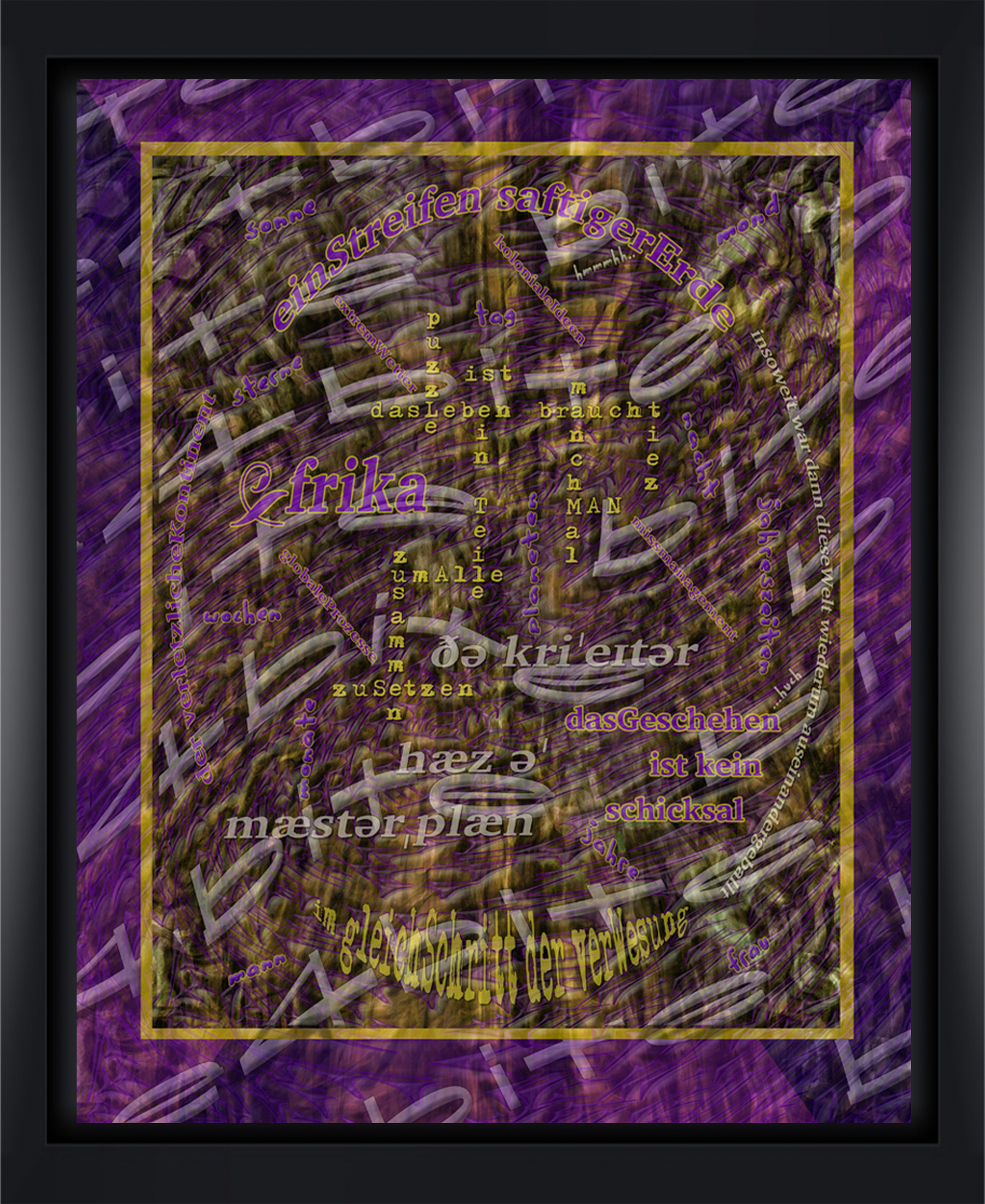 Afrika krisengeschüttelter Weltteil / Erderwärmung / Extremwetterlagen / Dürre / Ganze Ernten fielen aus / Hungersnot / Tiere starben und dann die Menschen, zuerst die Alten, dann die Kranken / das Geschehen ist kein Schicksal / Missmanagement des Bodens durch den Menschen / ökonomische Konflikte und globale Prozesse / Landgrabbing durch internationale Akteure / großer Schauplatz der Klimakatastrophe / ausgemergelte Menschen / staubtrockene Böden / Rinderkadaver / koloniale Ideologien / Plage von biblischem Ausmaß / Erderwärmung kein bloßes Zukunftsszenario